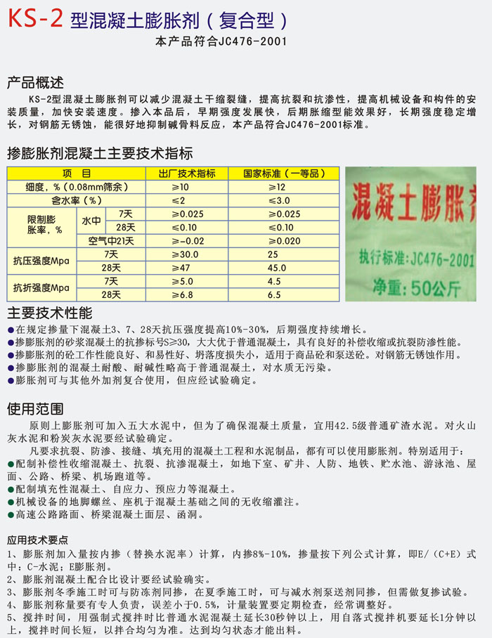 主要成分:明礬石膨脹劑、硫鋁酸鈣膨脹劑、氧化鈣膨脹劑、鐵屑膨脹劑、氧化鈣-硫鋁酸鈣復(fù)合膨脹劑等 |