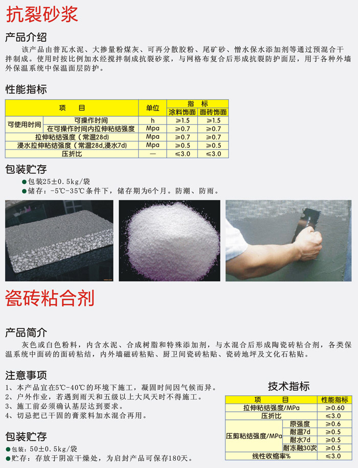 抗裂砂漿、瓷磚粘合劑