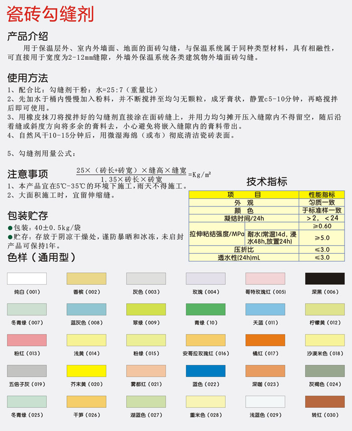 2、 具有憎水功能,防止水分從瓷磚縫滲入,防止防潮并杜絕反漿掛淚現(xiàn)象產(chǎn)生。